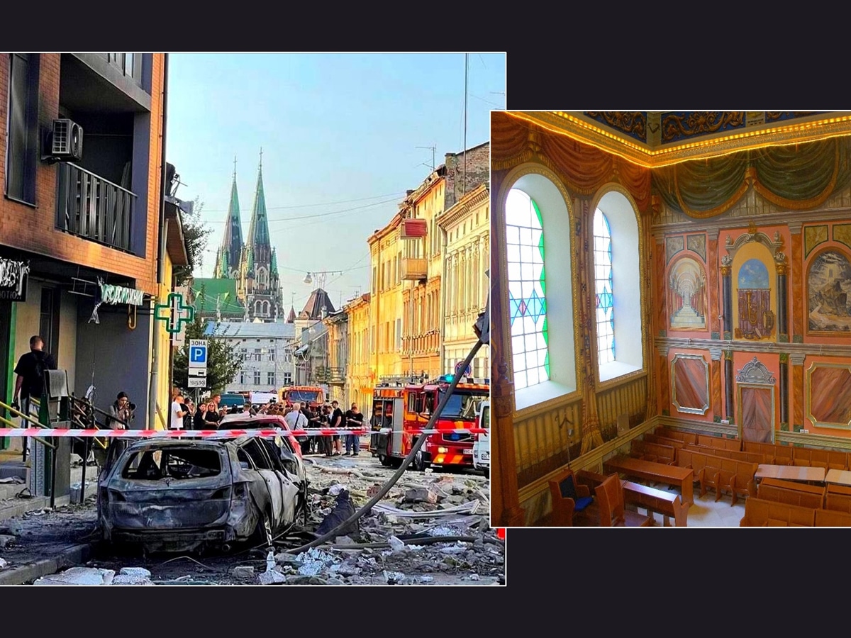 Утренний взрыв российской ракеты в центре Львова (Украина) 4 сентября 2024, на улице Братьев Михновских, разрушил окна синагоги на этой улице. Ракета взорвалась в жилом районе всего в ста метрах от синагоги с потрясающими фресками.
