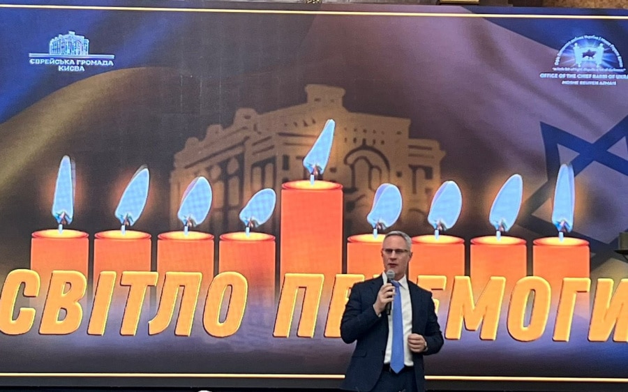 Посол Израиля в Украине Михаэль Бродский принял участие в церемонии, посвященной первому дню Хануки 5784 (2023).